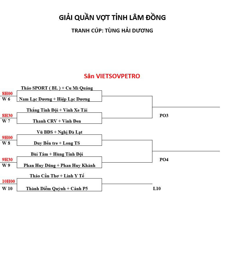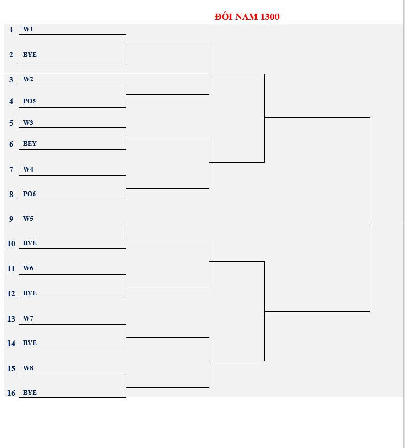 Lịch đấu và sơ đồ thi đấu nội dung 1300 . Thứ sáu , 26 tháng 09 năm 2025.